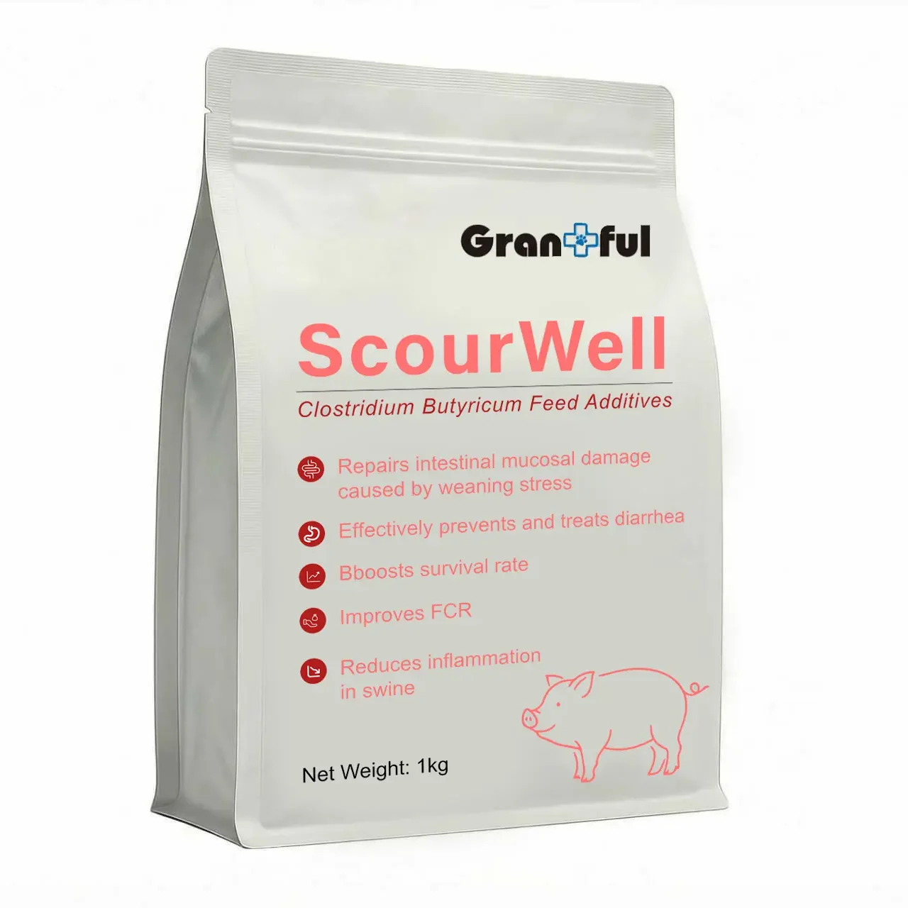 | Function | Repairs intestinal mucosal damage caused by weaning stress, Effectively prevents and treats diarrhea, Bboosts survival rate Improves FCR Reduces inflammation in swine |